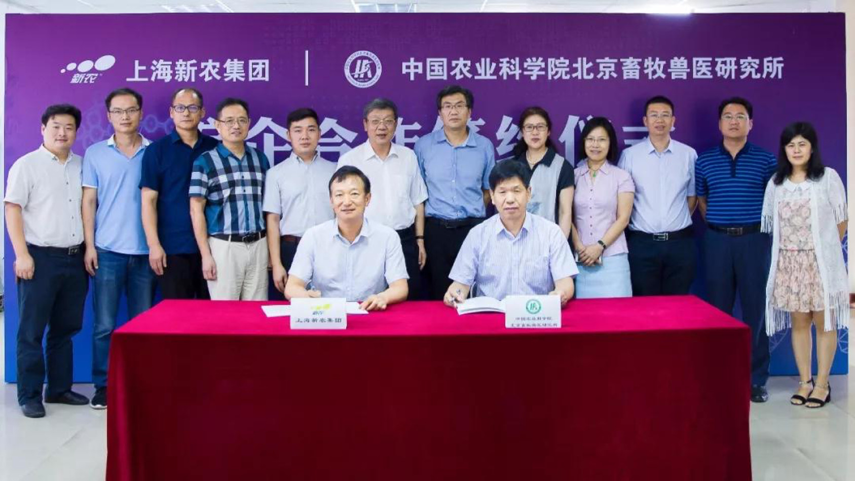 2019年7月8日上海新農飼料有限公司與中國農業科學院上海獸醫研究所在上海.松江-新農科技中心簽署了產學研合作協議!中國農業科學院上海獸醫研究所所長童光志、書記馬志勇攜豬病毒性繁殖障礙綜合癥團隊成員:...